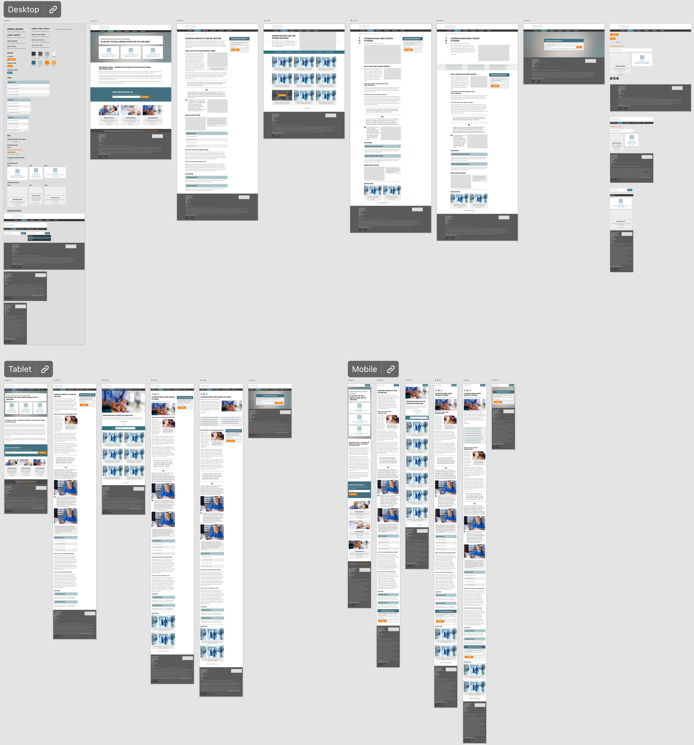 The site was designed and prototypes were created in Adobe XD. Screen layouts were created for the home, interior, blog hub, blog post, and multistep form pages in desktop, tablet, and mobile sizes. The social and discovery ads were created inside Photoshop and stock photography was used to show a diverse set of nurses.