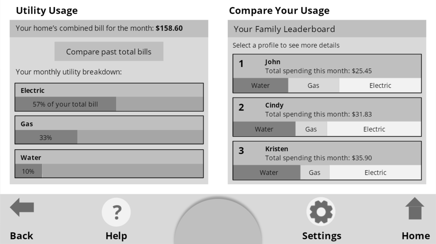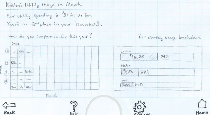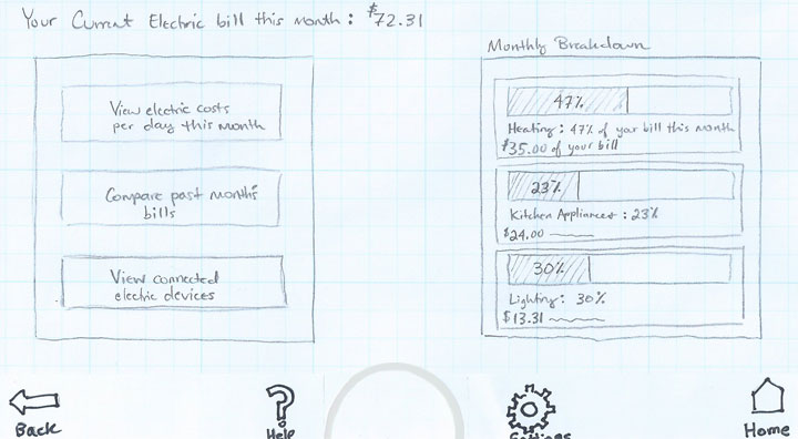 The paper prototype was tested with two evaluators. Both evaluators owned and regularly used smart devices in their homes and were interested in reducing their utility bills.