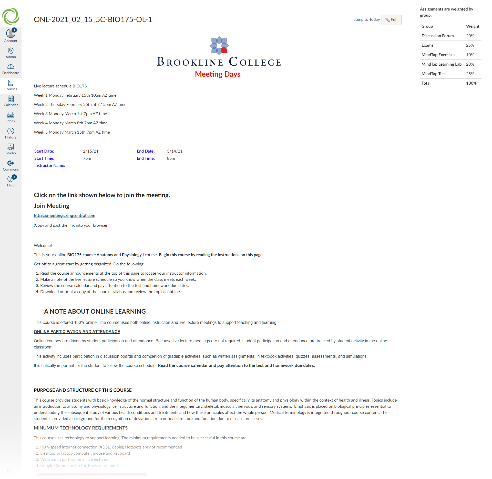 The end deliverable was a course blueprint in the Canvas learning management system that could be copied and customized by the instructional design and educational technology teams for new semester starts.